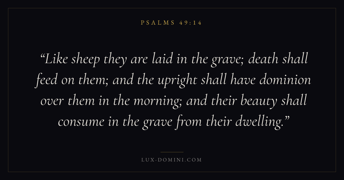 Like sheep they are laid in the grave; death shall feed on them; and the upright shall have dominion over them in the morning; and their beauty shall consume in the grave from their dwelling.