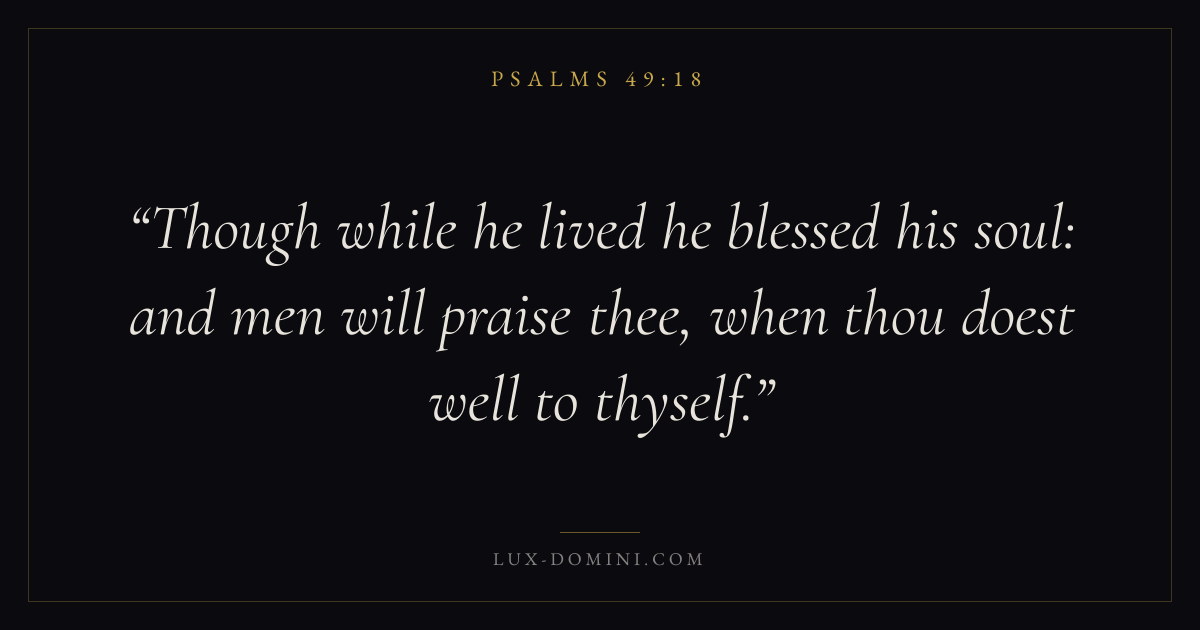 Though while he lived he blessed his soul: and men will praise thee, when thou doest well to thyself.