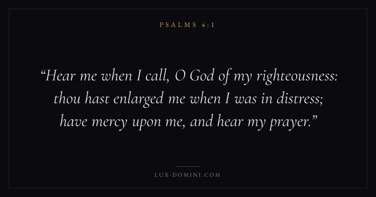 Hear me when I call, O God of my righteousness: thou hast enlarged me when I was in distress; have mercy upon me, and hear my prayer.