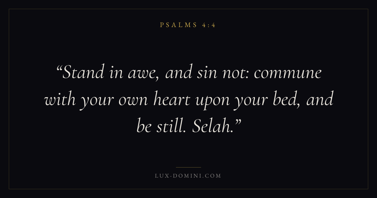 Stand in awe, and sin not: commune with your own heart upon your bed, and be still. Selah.