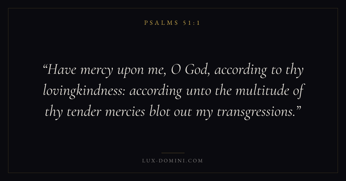 Have mercy upon me, O God, according to thy lovingkindness: according unto the multitude of thy tender mercies blot out my transgressions.
