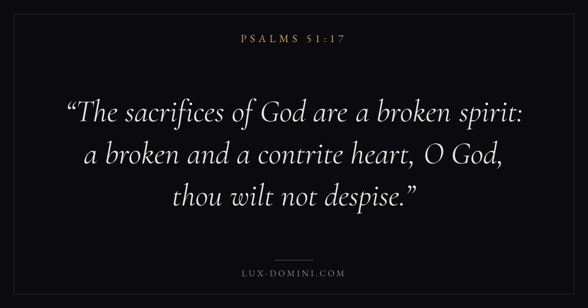 The sacrifices of God are a broken spirit: a broken and a contrite heart, O God, thou wilt not despise.