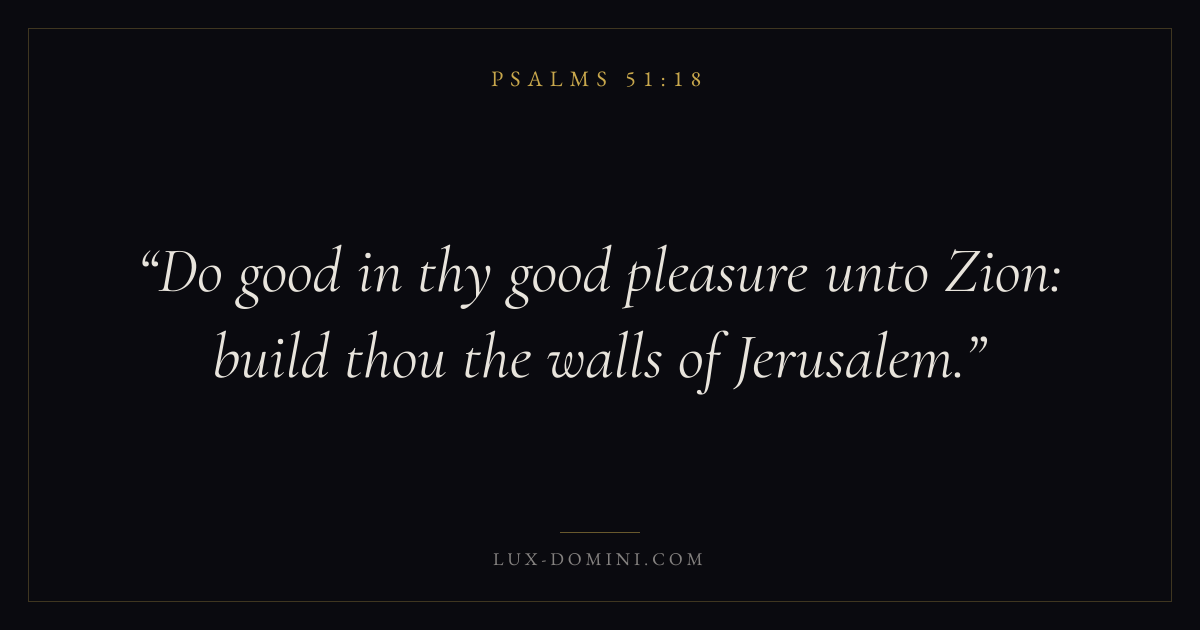 Do good in thy good pleasure unto Zion: build thou the walls of Jerusalem.