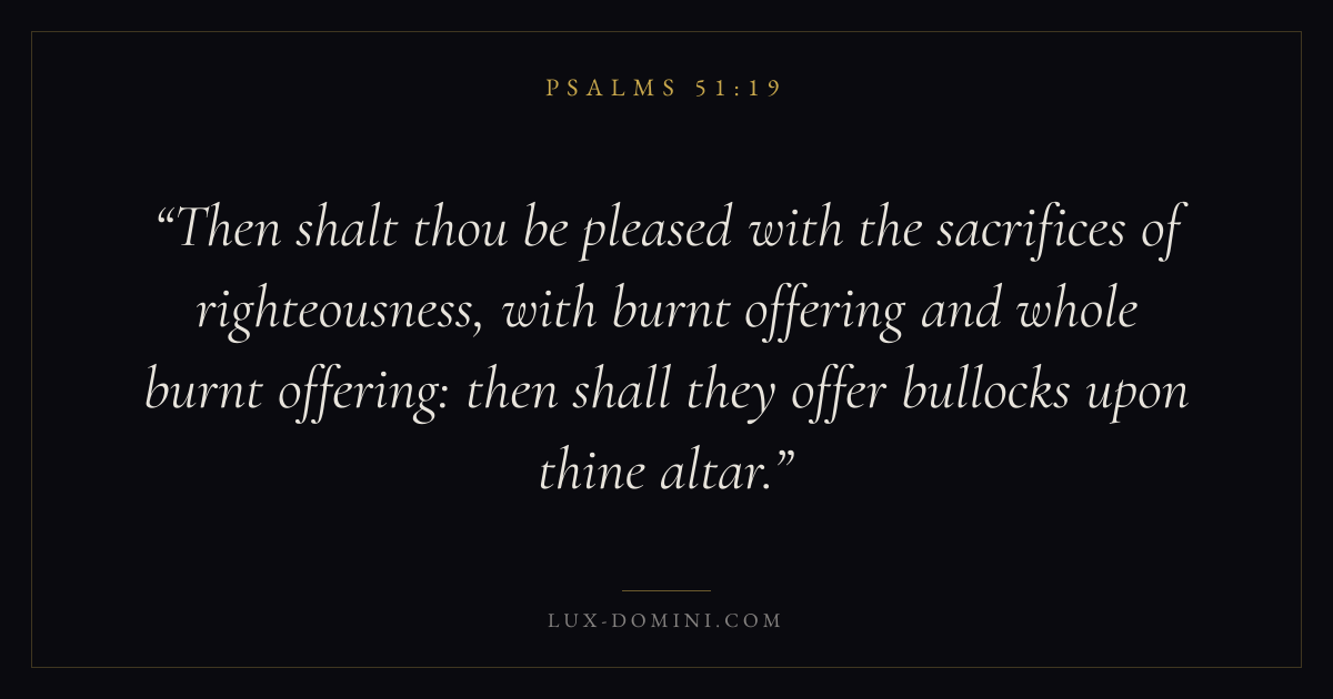 Then shalt thou be pleased with the sacrifices of righteousness, with burnt offering and whole burnt offering: then shall they offer bullocks upon thine altar.