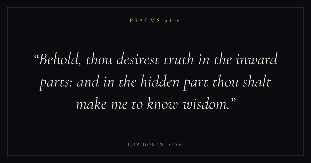Behold, thou desirest truth in the inward parts: and in the hidden part thou shalt make me to know wisdom.