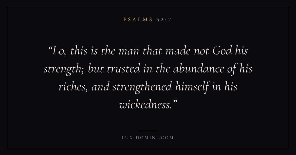 Lo, this is the man that made not God his strength; but trusted in the abundance of his riches, and strengthened himself in his wickedness.