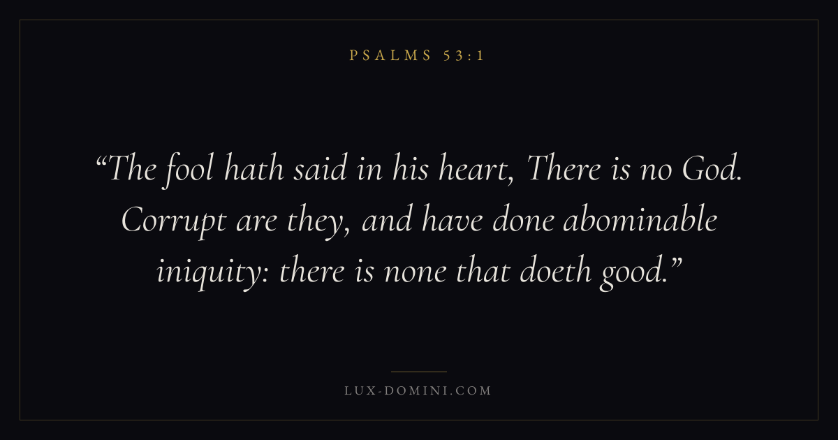 The fool hath said in his heart, There is no God. Corrupt are they, and have done abominable iniquity: there is none that doeth good.
