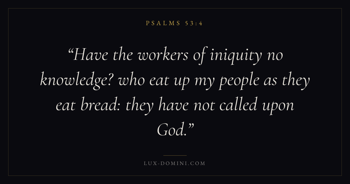 Have the workers of iniquity no knowledge? who eat up my people as they eat bread: they have not called upon God.