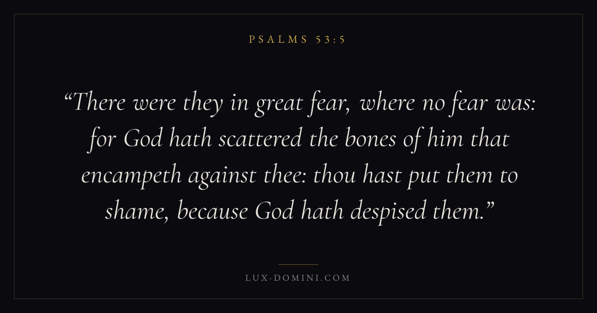 There were they in great fear, where no fear was: for God hath scattered the bones of him that encampeth against thee: thou hast put them to shame, because God hath despised them.