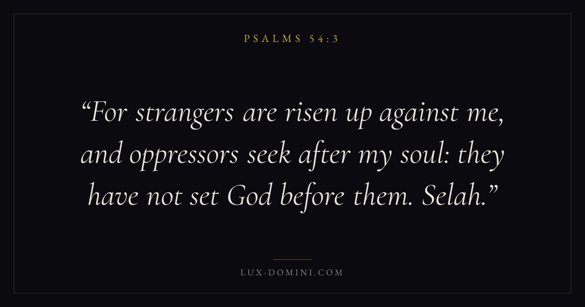 For strangers are risen up against me, and oppressors seek after my soul: they have not set God before them. Selah.