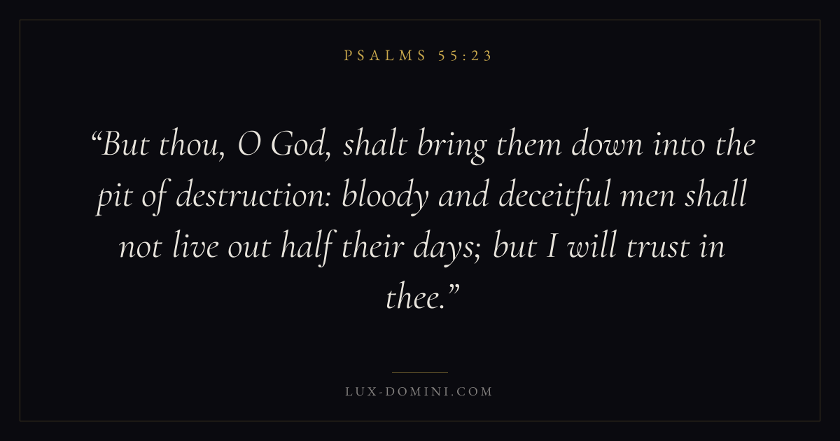 But thou, O God, shalt bring them down into the pit of destruction: bloody and deceitful men shall not live out half their days; but I will trust in thee.