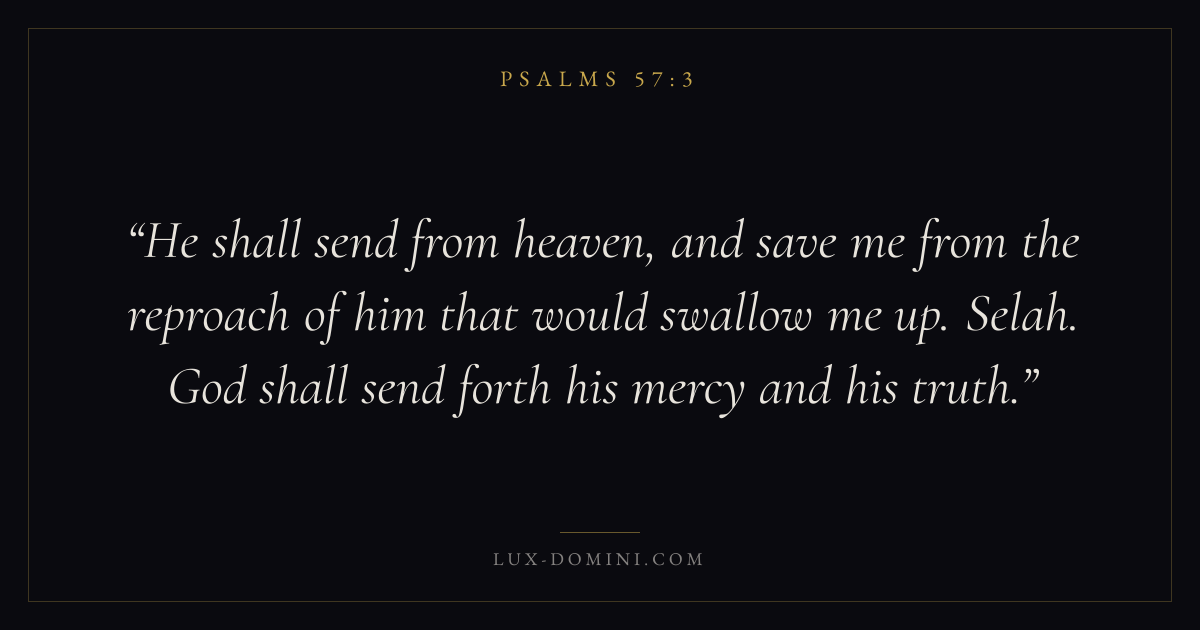 He shall send from heaven, and save me from the reproach of him that would swallow me up. Selah. God shall send forth his mercy and his truth.