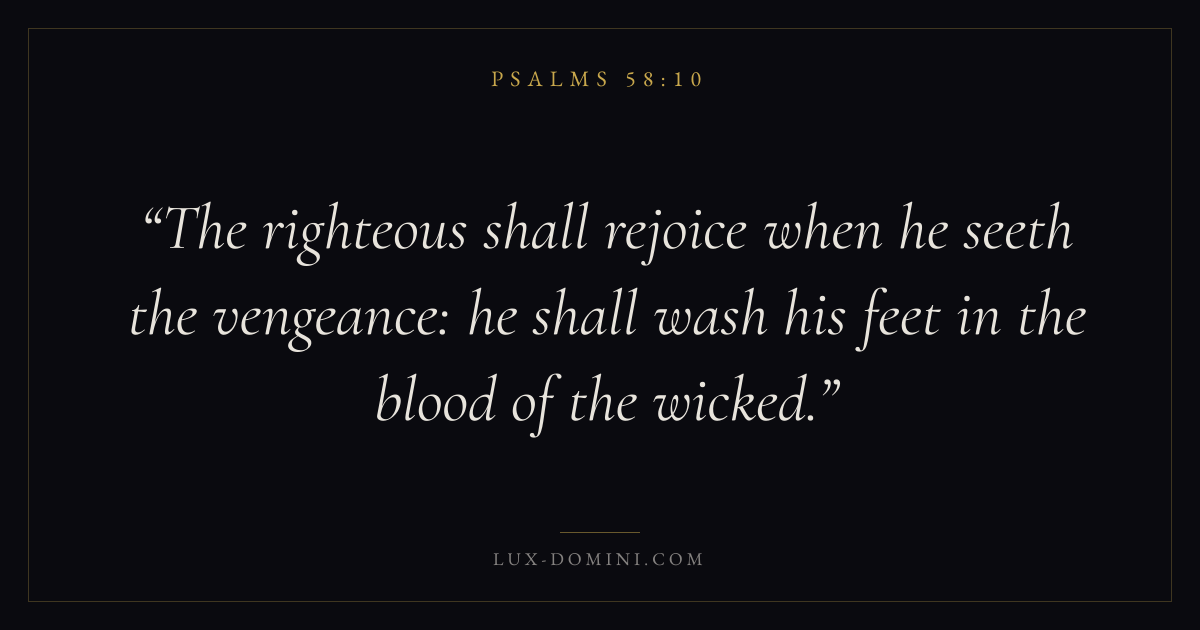 The righteous shall rejoice when he seeth the vengeance: he shall wash his feet in the blood of the wicked.