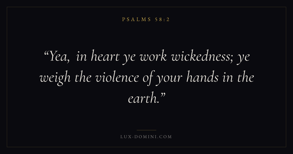 Yea, in heart ye work wickedness; ye weigh the violence of your hands in the earth.