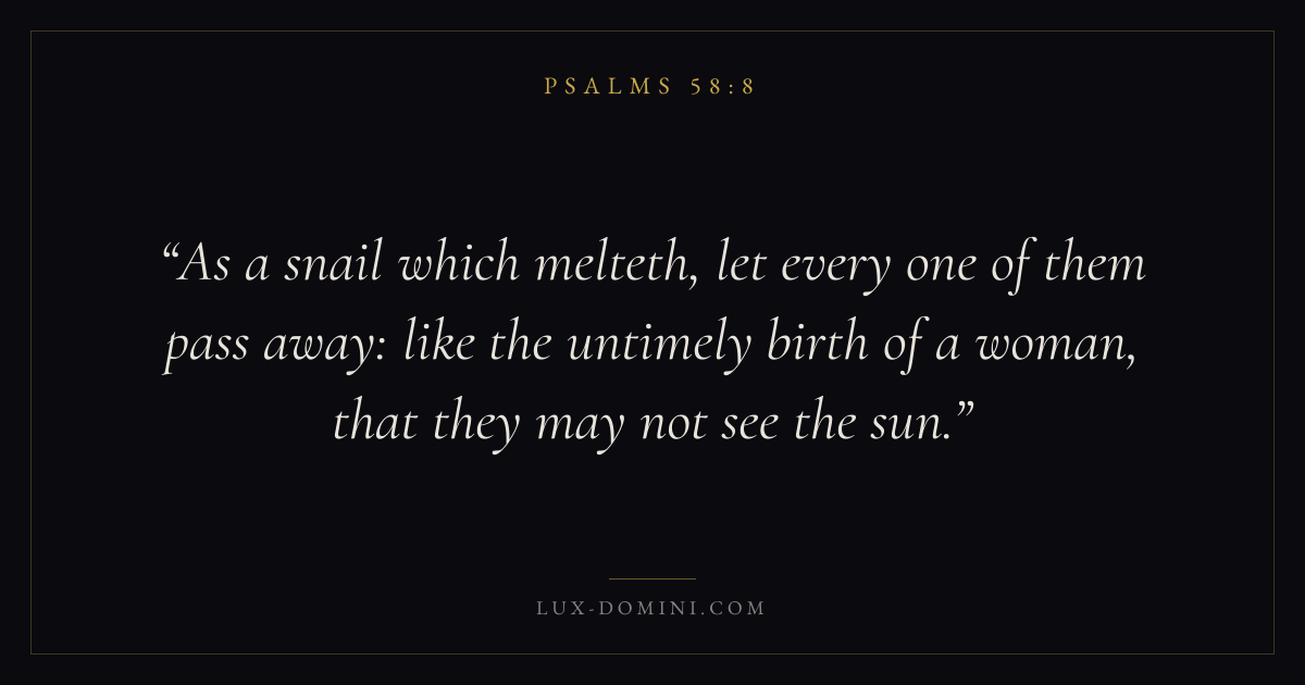 As a snail which melteth, let every one of them pass away: like the untimely birth of a woman, that they may not see the sun.