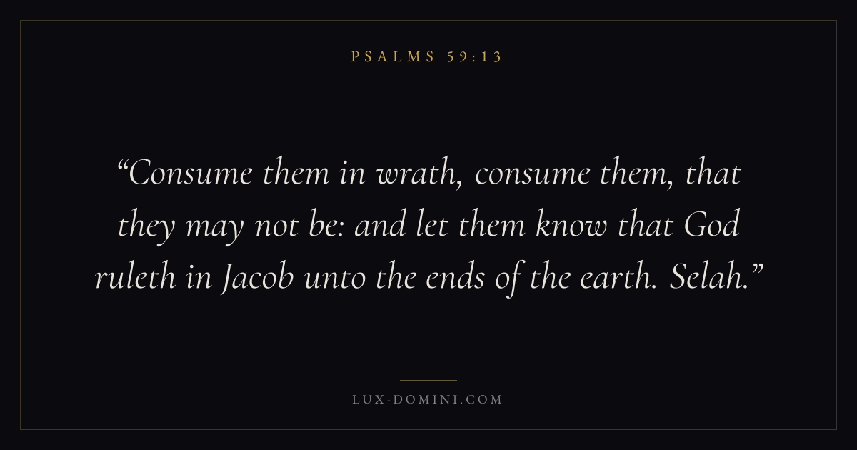 Consume them in wrath, consume them, that they may not be: and let them know that God ruleth in Jacob unto the ends of the earth. Selah.