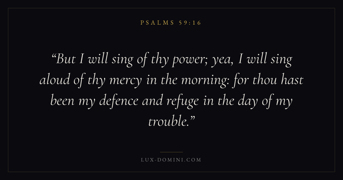 But I will sing of thy power; yea, I will sing aloud of thy mercy in the morning: for thou hast been my defence and refuge in the day of my trouble.