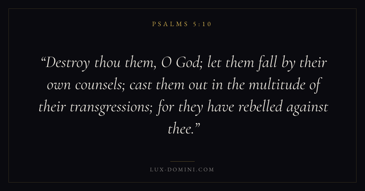 Destroy thou them, O God; let them fall by their own counsels; cast them out in the multitude of their transgressions; for they have rebelled against thee.