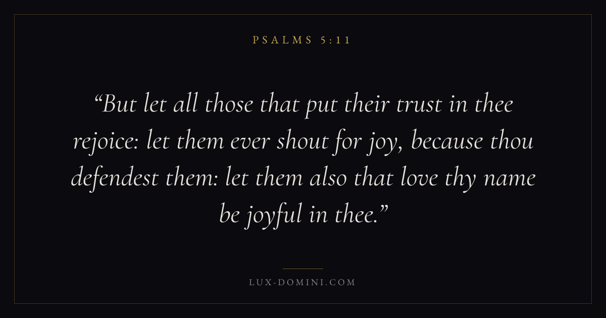 But let all those that put their trust in thee rejoice: let them ever shout for joy, because thou defendest them: let them also that love thy name be joyful in thee.