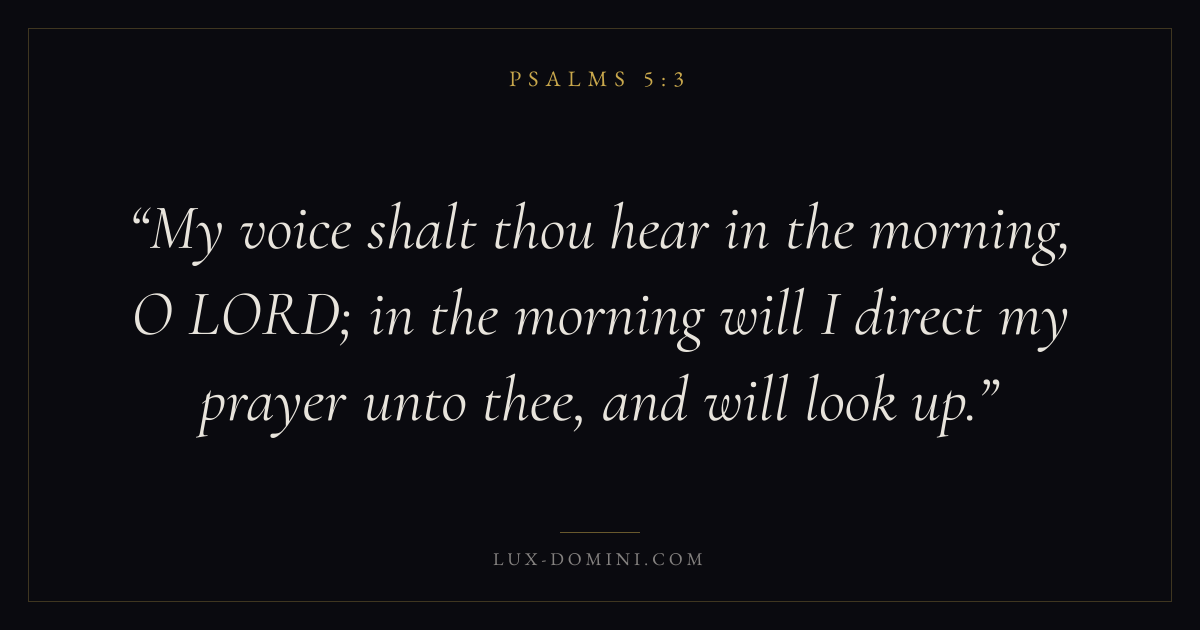 My voice shalt thou hear in the morning, O LORD; in the morning will I direct my prayer unto thee, and will look up.