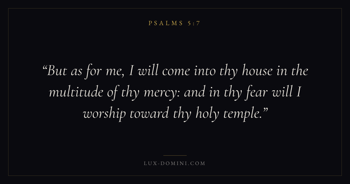 But as for me, I will come into thy house in the multitude of thy mercy: and in thy fear will I worship toward thy holy temple.