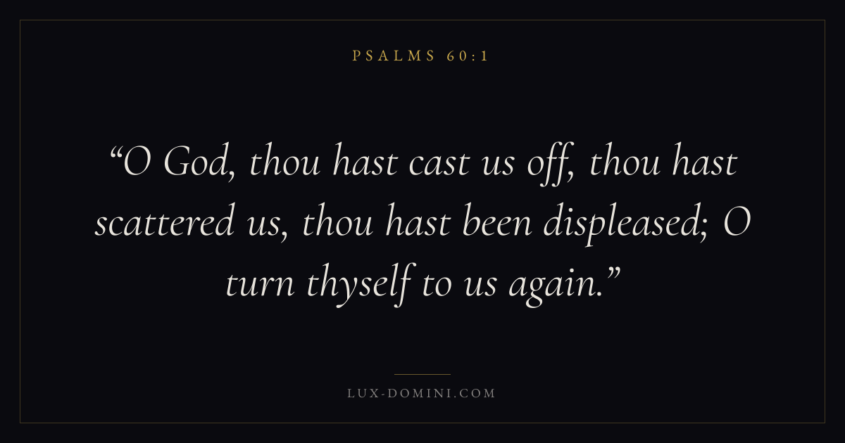 O God, thou hast cast us off, thou hast scattered us, thou hast been displeased; O turn thyself to us again.