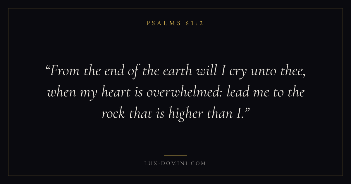 From the end of the earth will I cry unto thee, when my heart is overwhelmed: lead me to the rock that is higher than I.