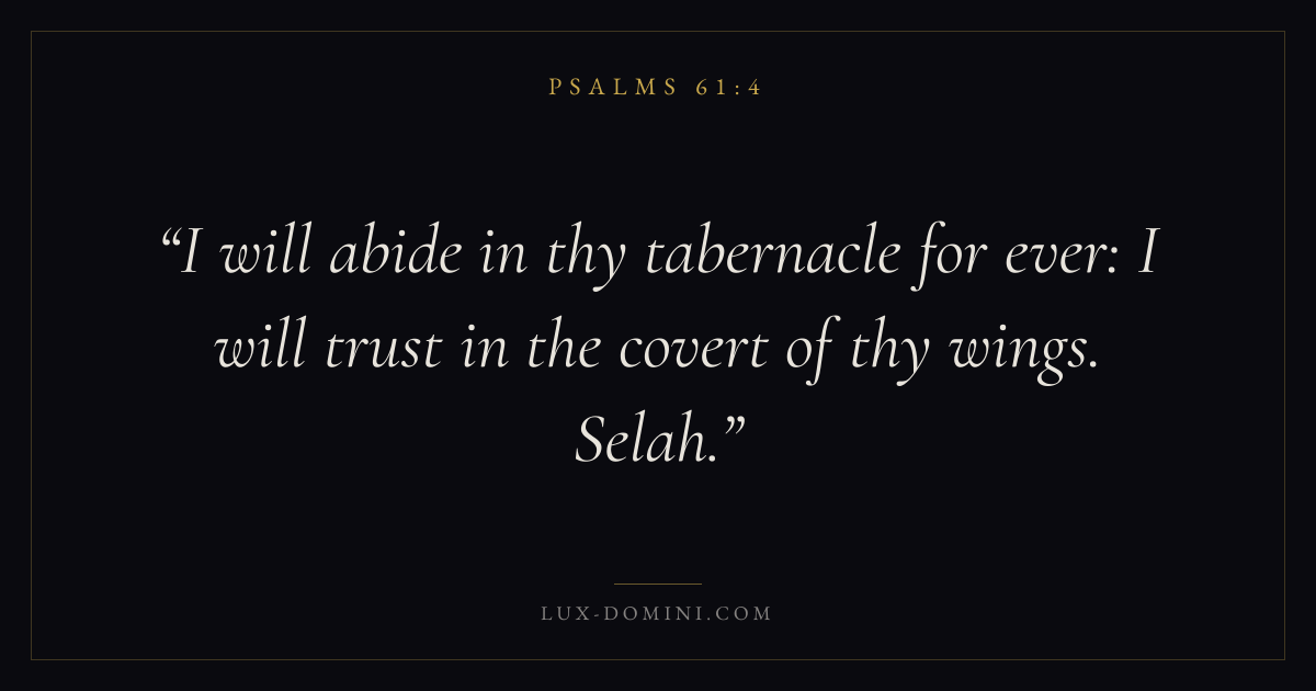 I will abide in thy tabernacle for ever: I will trust in the covert of thy wings. Selah.