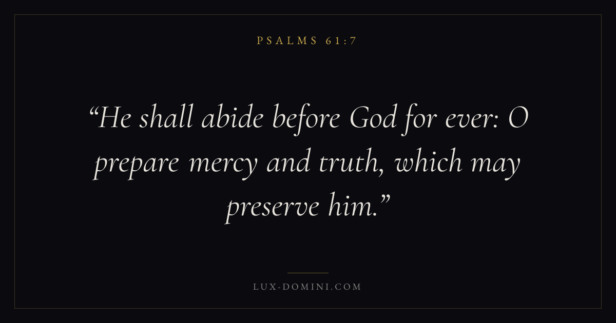 He shall abide before God for ever: O prepare mercy and truth, which may preserve him.