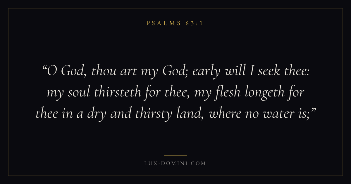 O God, thou art my God; early will I seek thee: my soul thirsteth for thee, my flesh longeth for thee in a dry and thirsty land, where no water is;