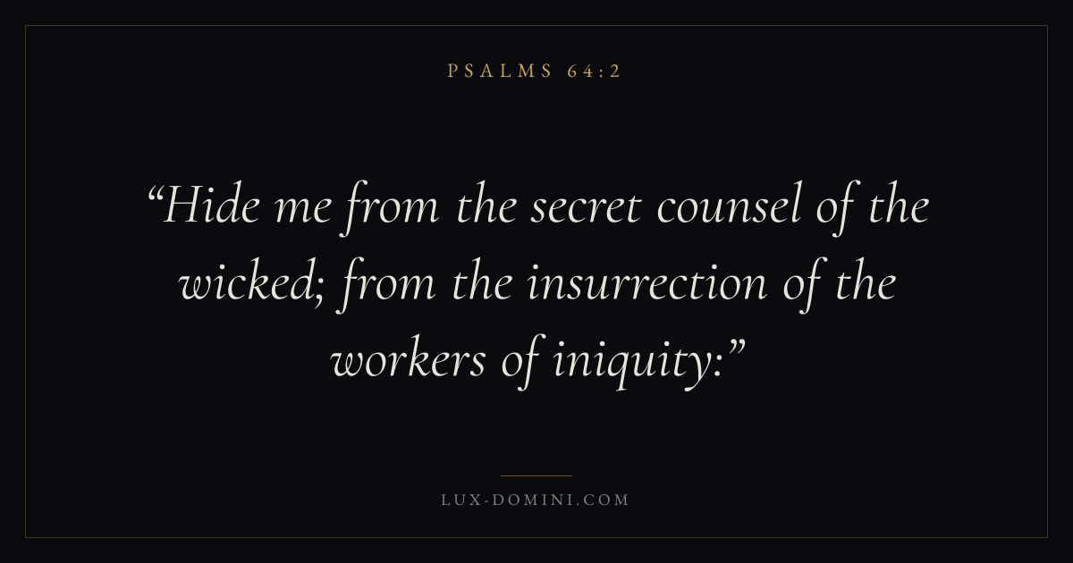 Hide me from the secret counsel of the wicked; from the insurrection of the workers of iniquity: