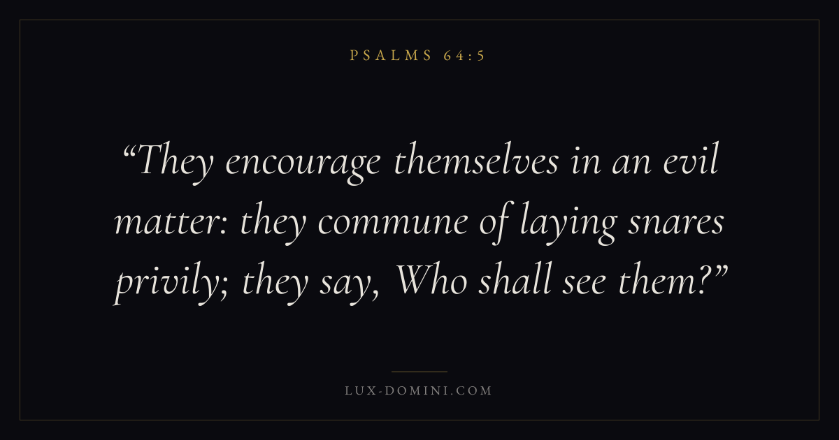 They encourage themselves in an evil matter: they commune of laying snares privily; they say, Who shall see them?