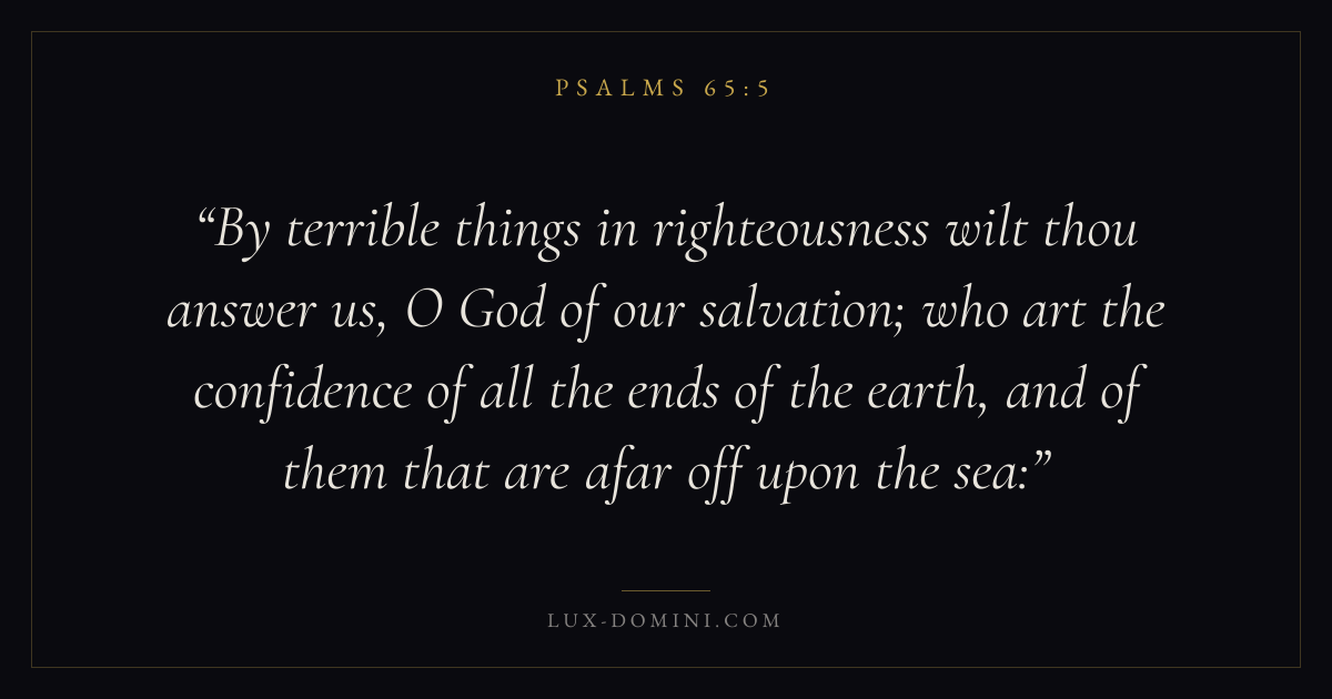 By terrible things in righteousness wilt thou answer us, O God of our salvation; who art the confidence of all the ends of the earth, and of them that are afar off upon the sea: