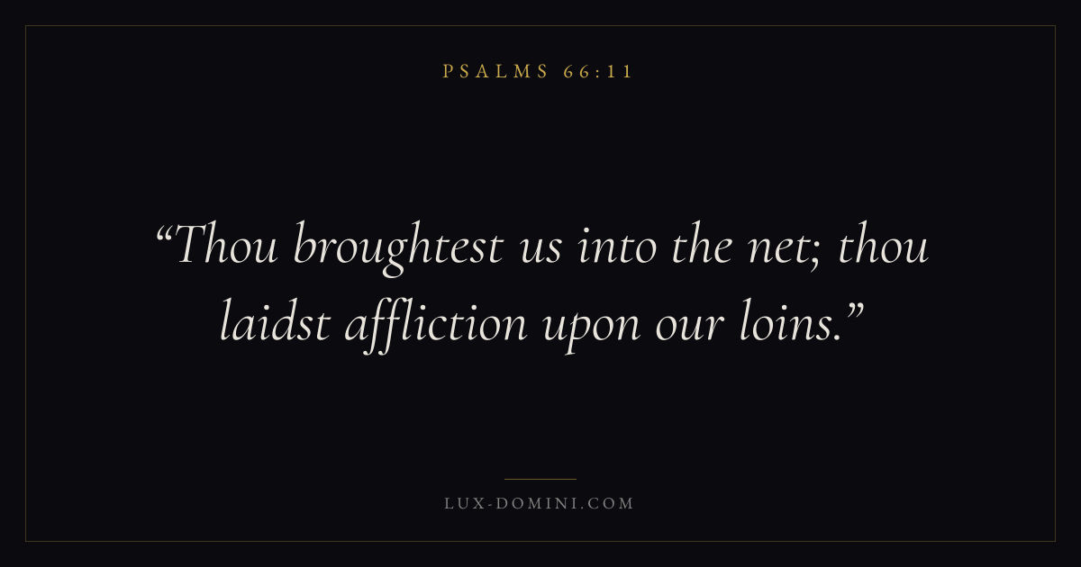 Thou broughtest us into the net; thou laidst affliction upon our loins.