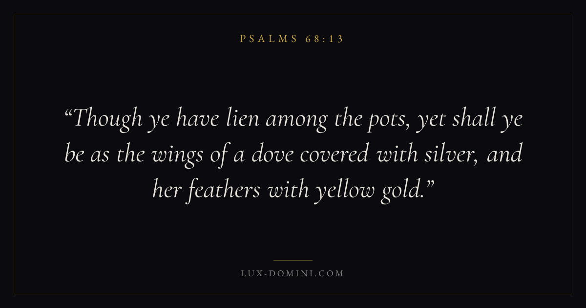 Though ye have lien among the pots, yet shall ye be as the wings of a dove covered with silver, and her feathers with yellow gold.
