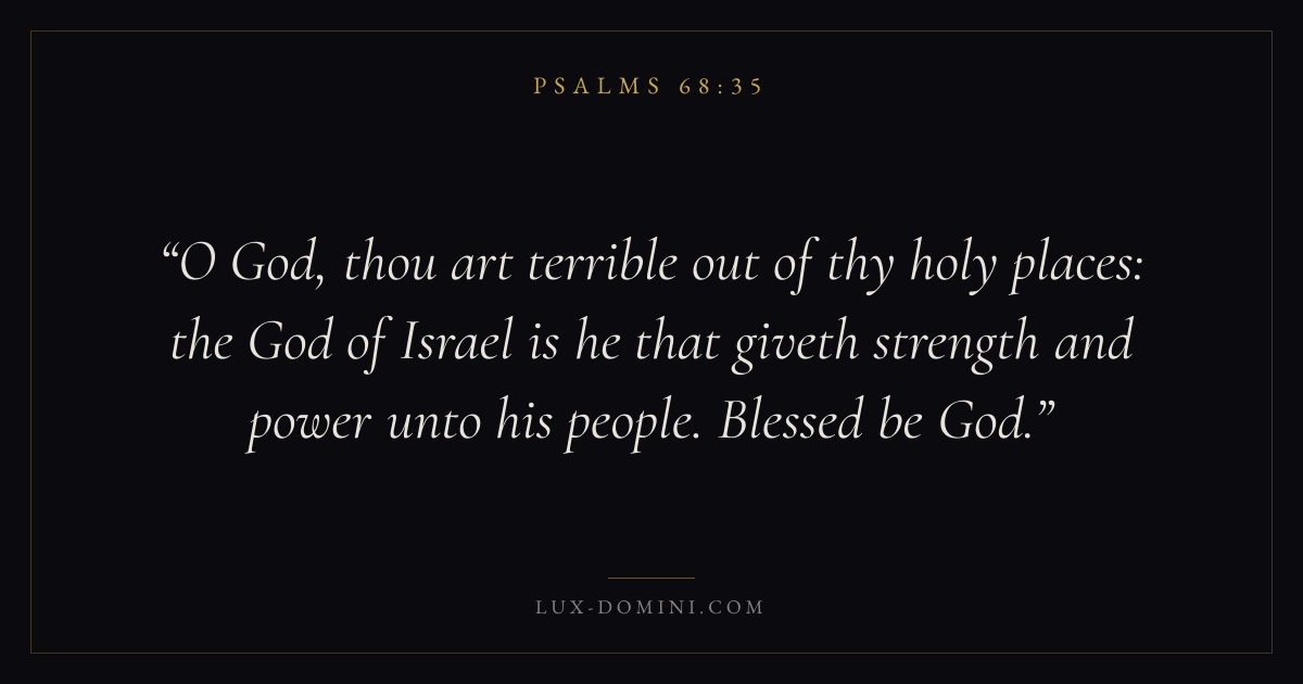 O God, thou art terrible out of thy holy places: the God of Israel is he that giveth strength and power unto his people. Blessed be God.