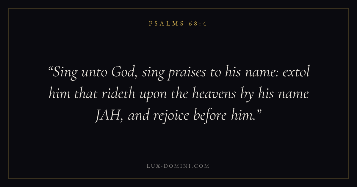 Sing unto God, sing praises to his name: extol him that rideth upon the heavens by his name JAH, and rejoice before him.