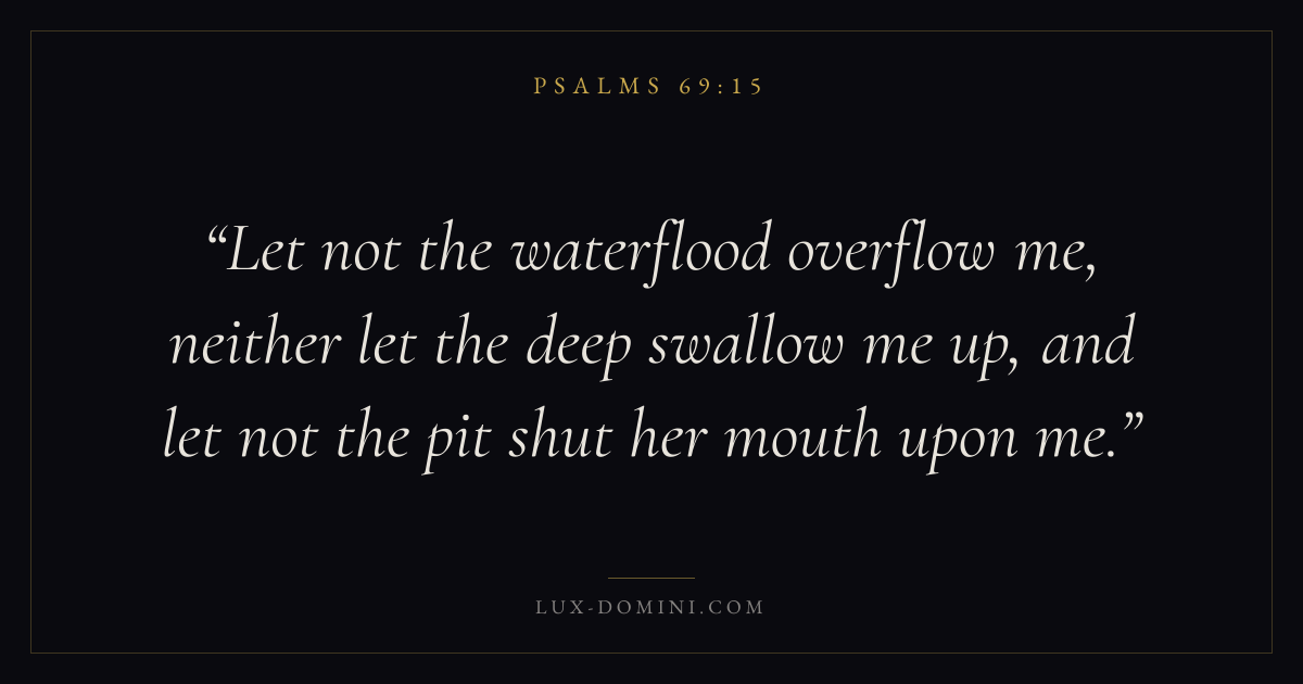Let not the waterflood overflow me, neither let the deep swallow me up, and let not the pit shut her mouth upon me.
