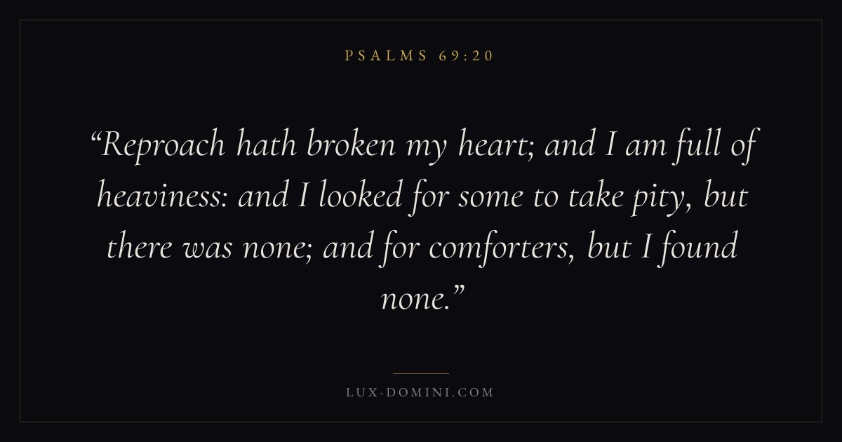 Reproach hath broken my heart; and I am full of heaviness: and I looked for some to take pity, but there was none; and for comforters, but I found none.