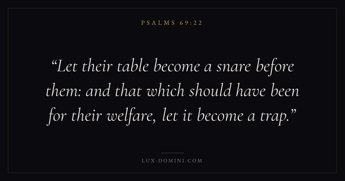 Let their table become a snare before them: and that which should have been for their welfare, let it become a trap.