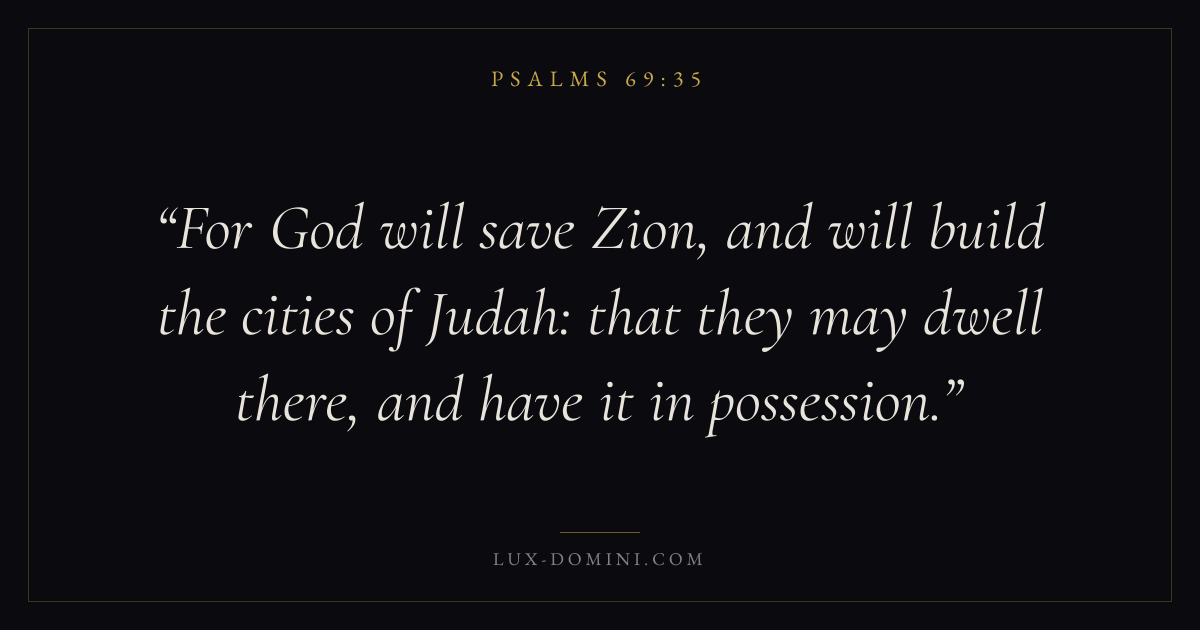 For God will save Zion, and will build the cities of Judah: that they may dwell there, and have it in possession.