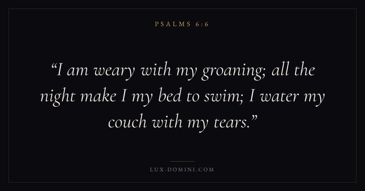 I am weary with my groaning; all the night make I my bed to swim; I water my couch with my tears.