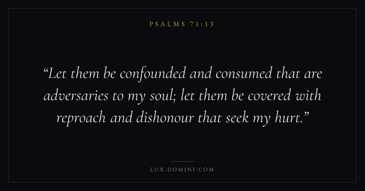 Let them be confounded and consumed that are adversaries to my soul; let them be covered with reproach and dishonour that seek my hurt.