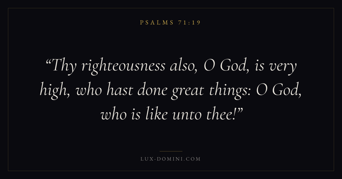 Thy righteousness also, O God, is very high, who hast done great things: O God, who is like unto thee!