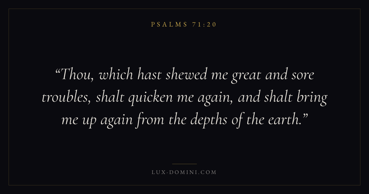 Thou, which hast shewed me great and sore troubles, shalt quicken me again, and shalt bring me up again from the depths of the earth.