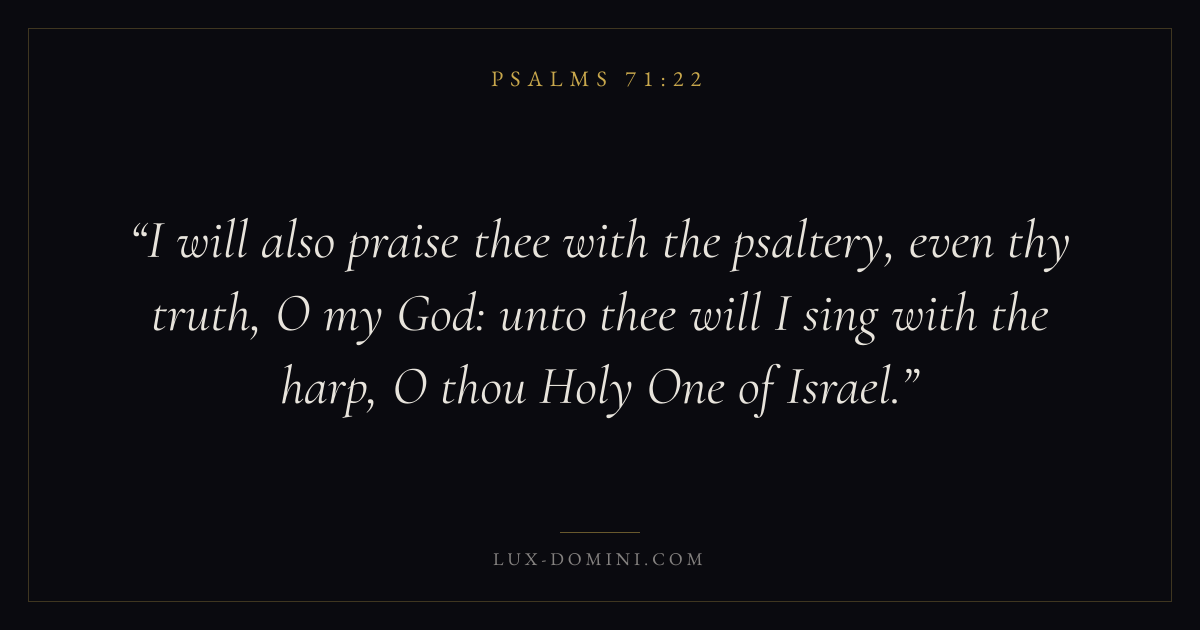 I will also praise thee with the psaltery, even thy truth, O my God: unto thee will I sing with the harp, O thou Holy One of Israel.