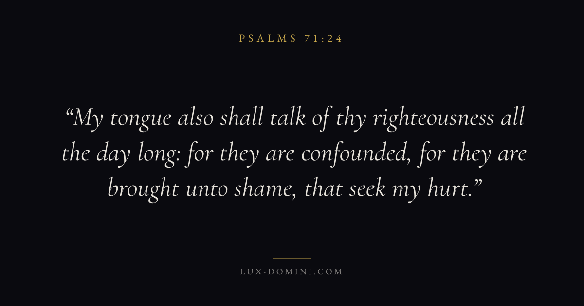 My tongue also shall talk of thy righteousness all the day long: for they are confounded, for they are brought unto shame, that seek my hurt.