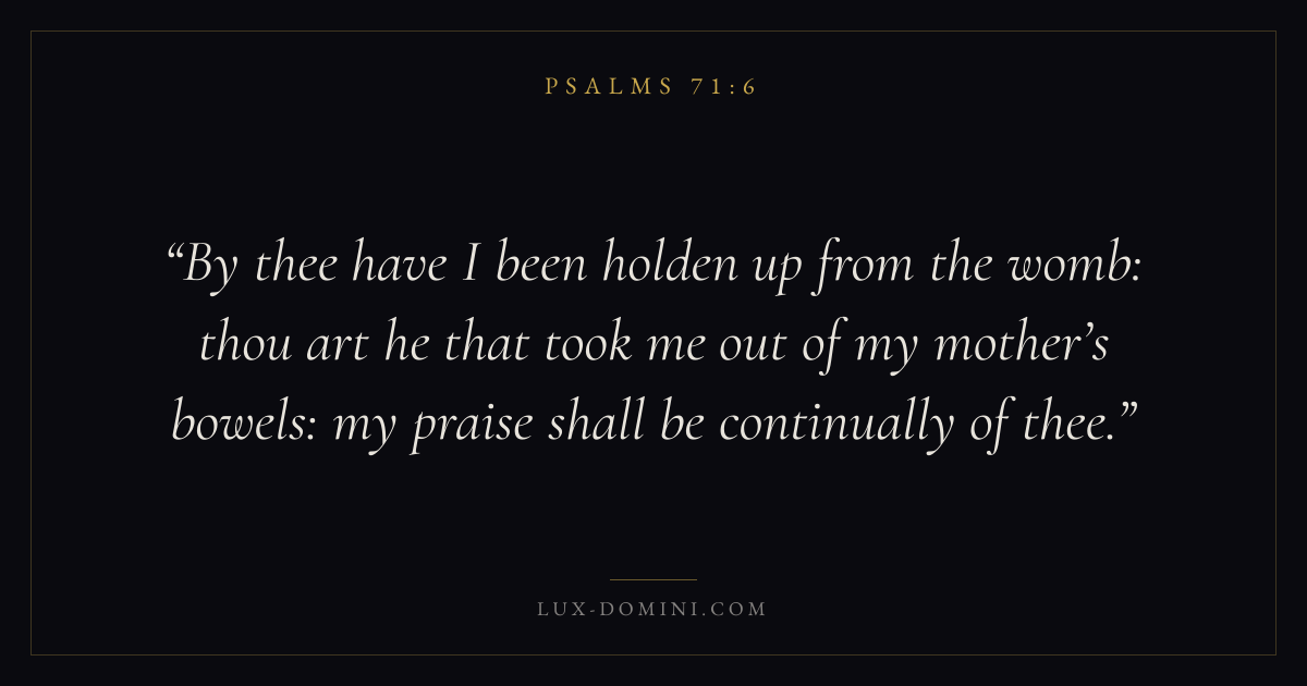 By thee have I been holden up from the womb: thou art he that took me out of my mother’s bowels: my praise shall be continually of thee.