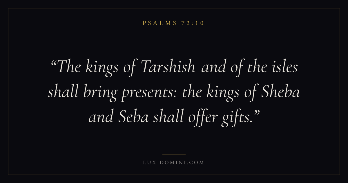 The kings of Tarshish and of the isles shall bring presents: the kings of Sheba and Seba shall offer gifts.