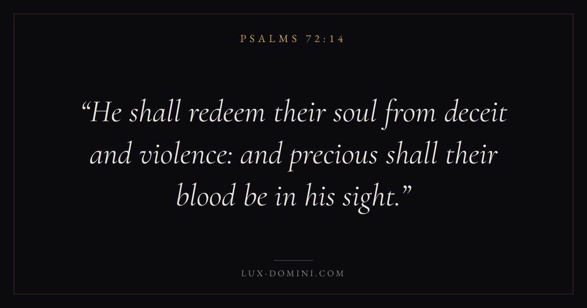 He shall redeem their soul from deceit and violence: and precious shall their blood be in his sight.
